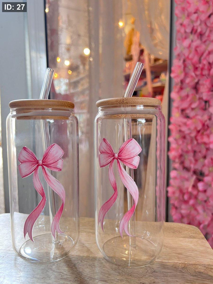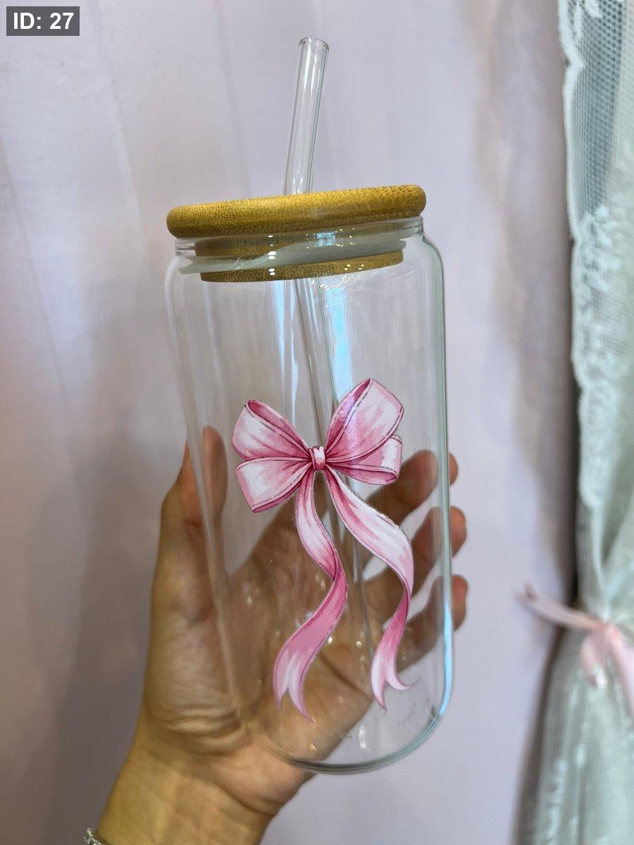 كوب شفاف فيونكة مع غطاء ومصاصة